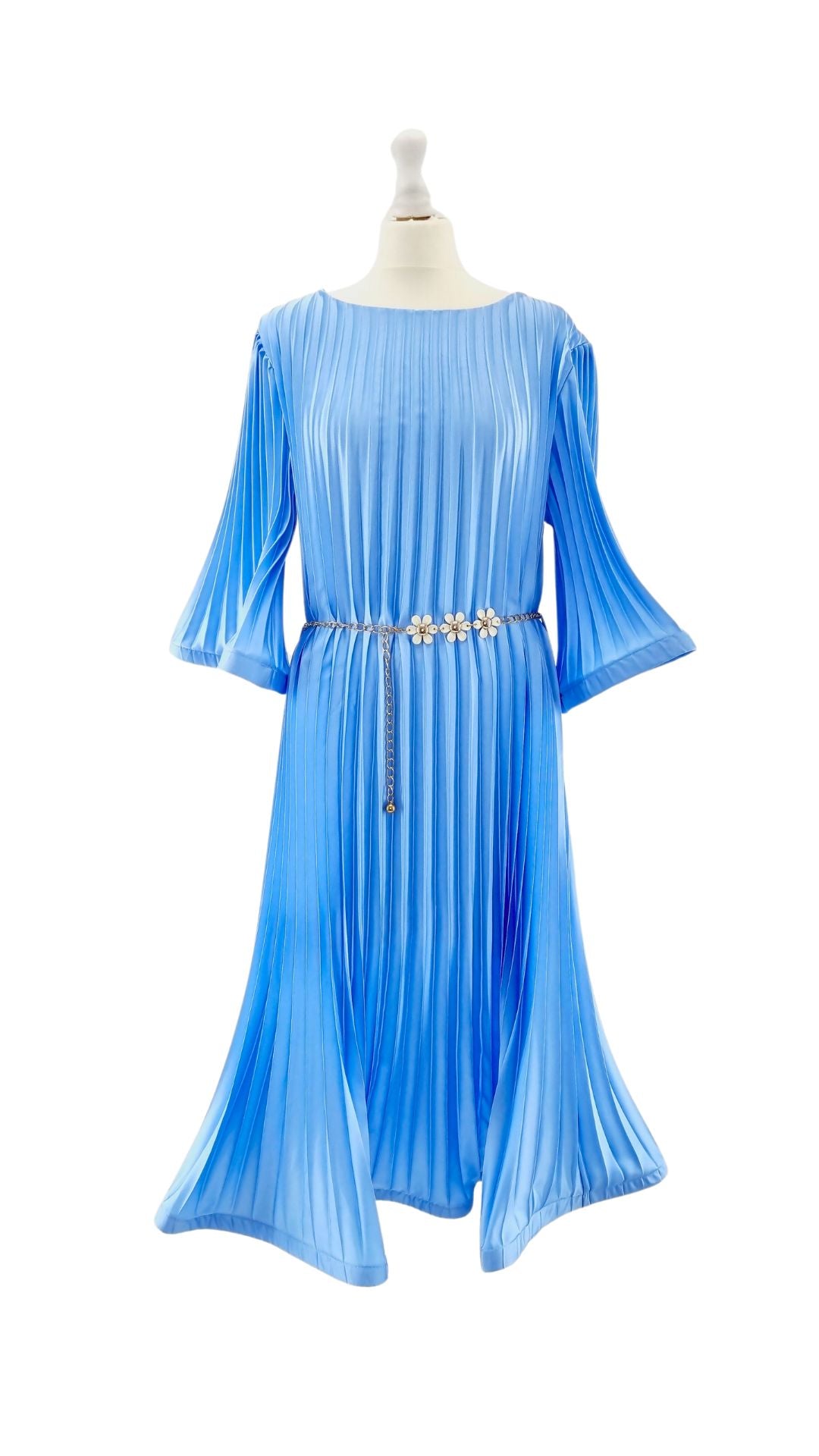 Gofrēta kleita ar pusgarām zvanveida piedurknēm.