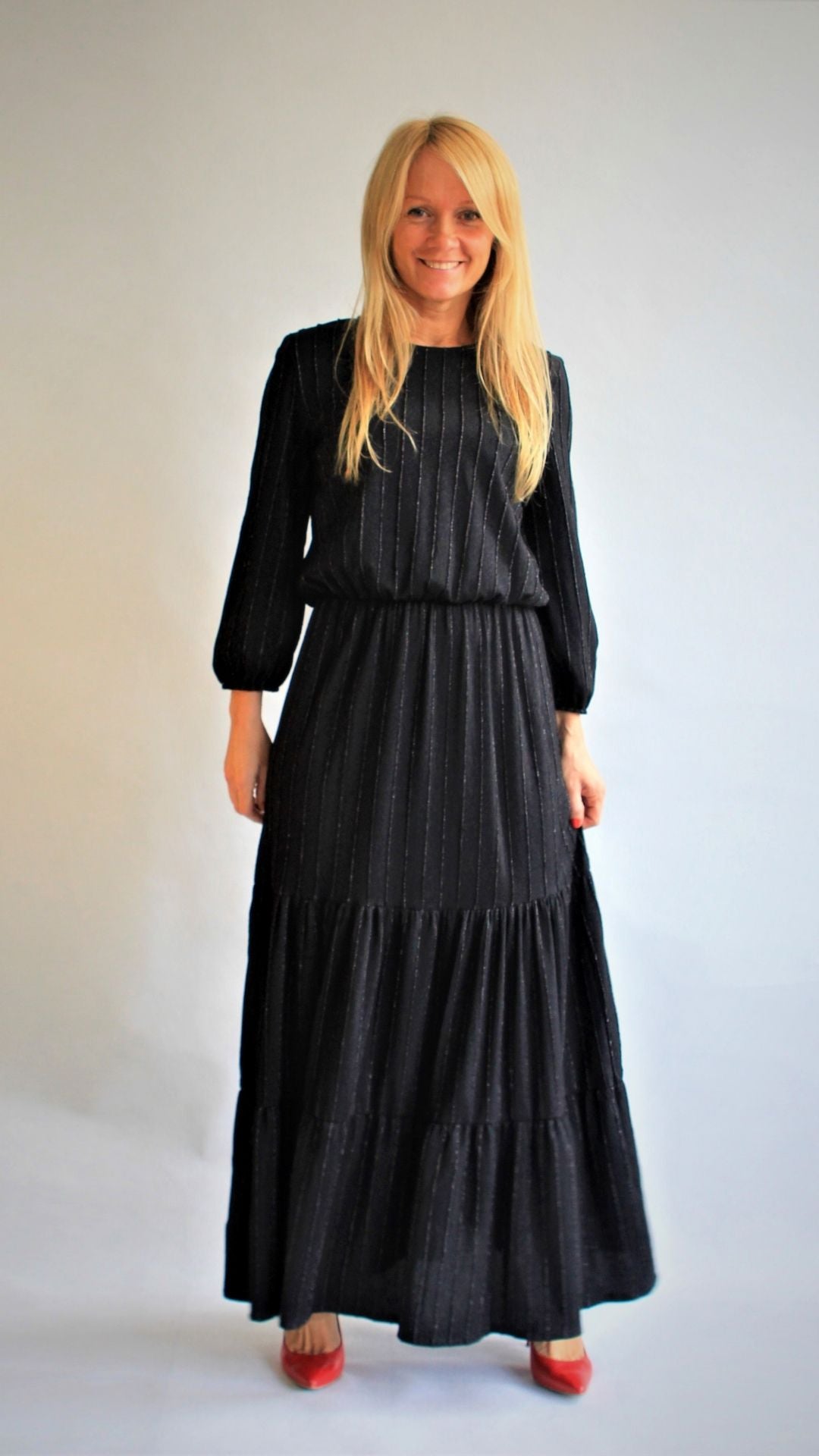 Melna gara kleita ar nelielu sudraba mirdzumu.