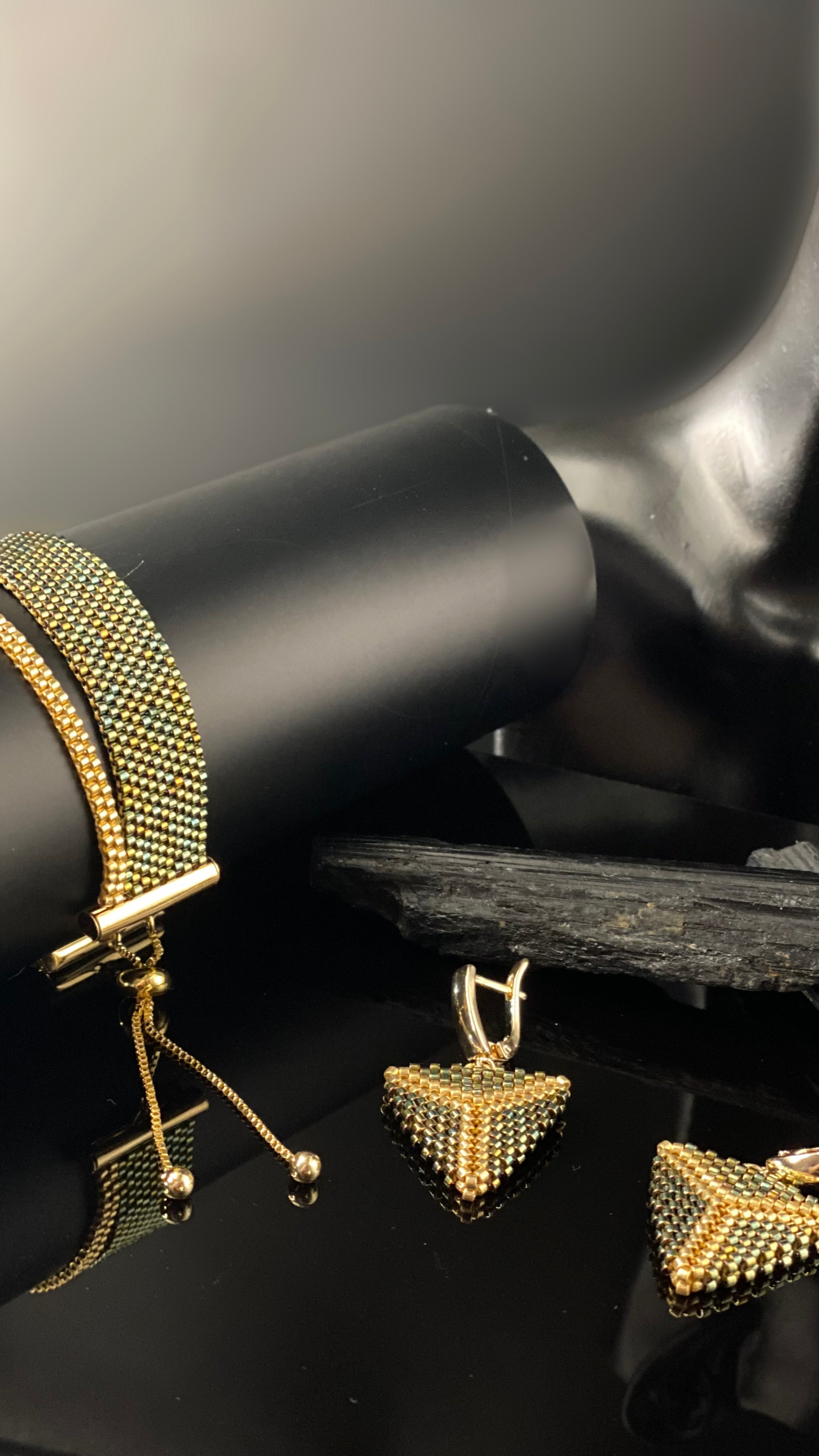 Komplekts pērļots no Japānā ražotām premium klases sēkliņpērlītēm.